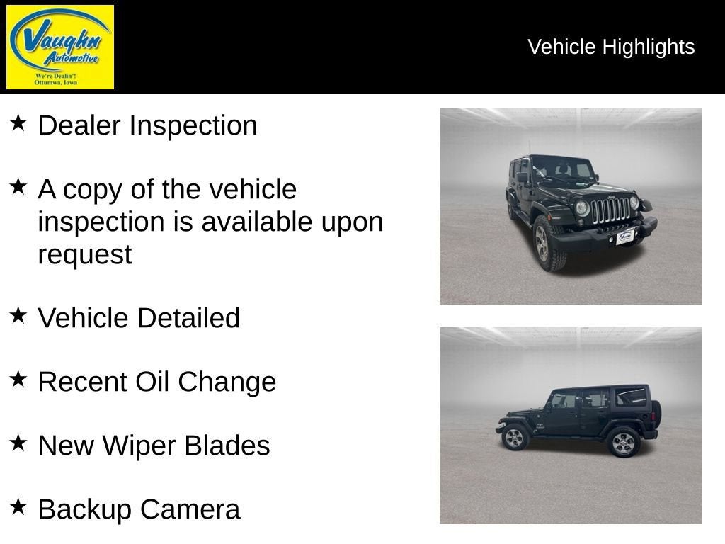 With its iconic Jeep styling, exceptional off-road capabilities, and an array of advanced technologies, this 2017 Wrangler Unlimited Sahara is the perfect blend of capability and convenience. Whether you're tackling rugged trails or navigating the daily commute, this Jeep is ready to exceed your expectations.