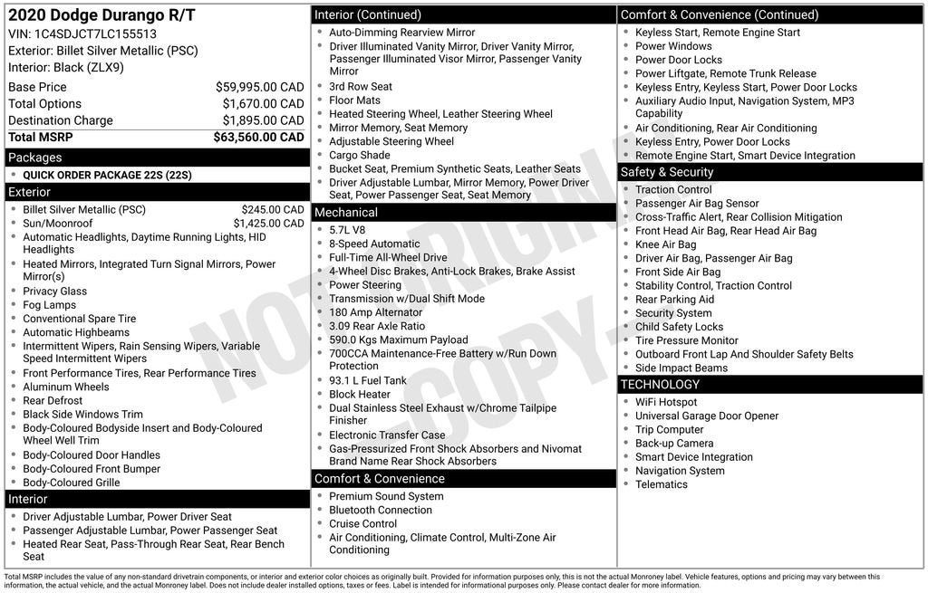 BUY ONLINE, WE SHIP!!! NO HIDDEN COSTS, NO HAGGLE PRICING, & OUR VEHICLES ARE MARKET PRICED DAILY AT VAUGHN AUTOMOTIVE.1-Owner, Dealer Inspection, A copy of the vehicle inspection is available upon request, Vehicle Detailed, Recent Oil Change, New Wiper Blades, 4 New Tires, Remote Start, 50/50 Powertrain: • 90 Day/3,000 Mile 50/50 Powertrain Guarantee • Vaughn will pay 50% of parts &, 8-Speed Automatic, AWD, Black w/Leather Trimmed Bucket Seats or Leather Trimmed Bucket Seats (ML), 9 Speakers, ABS brakes, AM/FM radio: SiriusXM, Anti-whiplash front head restraints, Apple CarPlay/Android Auto, Auto High-beam Headlights, Auto-dimming door mirrors, Auto-dimming Rear-View mirror, Automatic temperature control, Dual front impact airbags, Dual front side impact airbags, Electronic Stability Control, Emergency communication system: Roadside Assistance/9-1-1 Call, Front dual zone A/C, Front fog lights, Fully automatic headlights, Garage door transmitter, Heated door mirrors, Heated Front Seats, Heated rear seats, Heated steering wheel, High-Intensity Discharge Headlights, Knee airbag, Low tire pressure warning, Memory seat, Navigation System, Occupant sensing airbag, Overhead airbag, Overhead console, ParkView Rear Back-Up Camera, Power door mirrors, Power Liftgate, Radio: Uconnect 4C Nav w/8.4 Display, Rain sensing wipers, Rear air conditioning, Rear Load Leveling Suspension, Security system, Speed control, Speed-Sensitive Wipers, Split folding rear seat, Steering wheel mounted audio controls, Telescoping steering wheel, Tilt steering wheel, Traction control, Turn signal indicator mirrors, Wheels: 20 x 8.0 Satin Carbon - Design 1. HEMI 5.7L V8 Multi Displacement VVT Billet Clearcoat 2020 Dodge Durango R/T Priced below KBB Fair Purchase Price! Odometer is 9120 miles below market average!Our Vaughn Best Deal Pricing skips the arguing and you get a great deal. Plus it makes buying a car fast and fun! Online Price excludes $25 title, $15 electronic processing, $10 lien Fee (if applicable), and $180 Vaughn processing fee. Iowa buyers will pay Iowa Use Tax & License at delivery. Out of state buyers will pay their local tax, license, and other fees at delivery plus $165 out-of-state registration service fee. Vehicle not available for sale to other licensed dealers or vehicle resellers. Drive to Ottumwa and find out why people have been buying their vehicles from our family since 1934.http://www.realdeal.com/o204y
