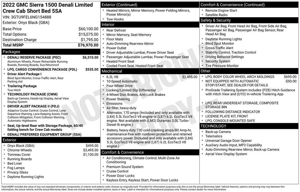 - Denali Preferred Equipment Group includes standard equipment