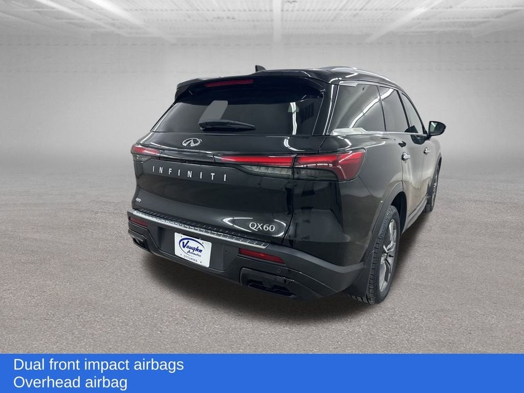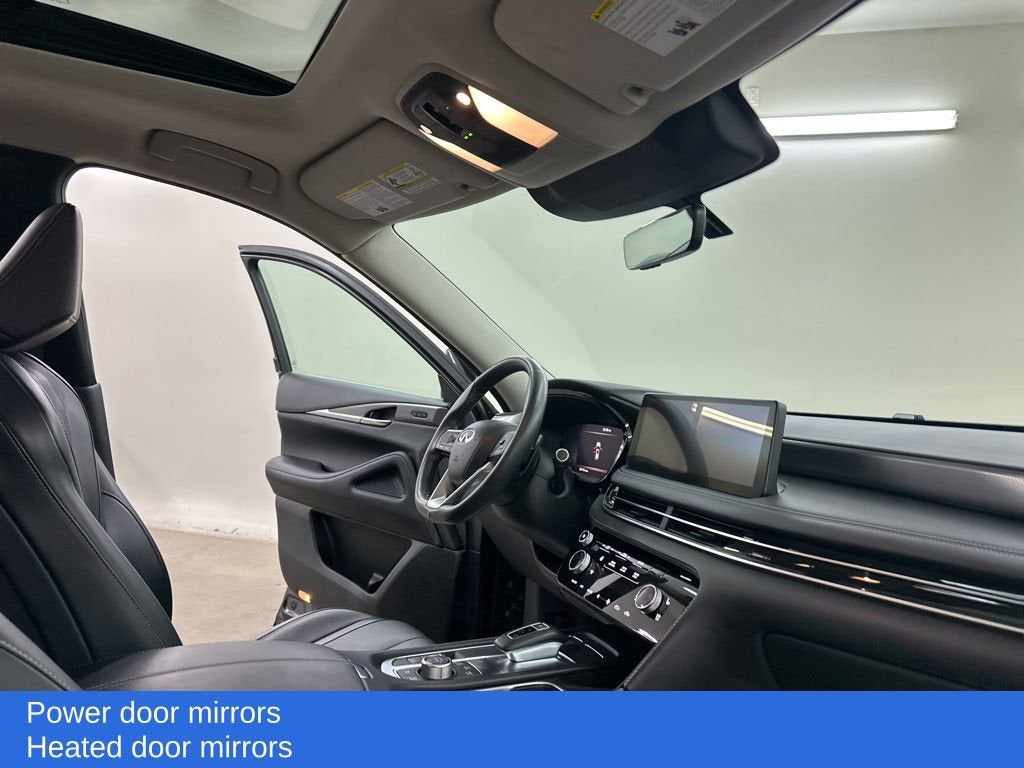 Balance of Factory Warranty, Dealer Inspection, A copy of the vehicle inspection is available upon request, Vehicle Detailed, Recent Oil Change, New Wiper Blades, Backup Camera, Remote Start, QX60 LUXE, 3.5L V6, 9-Speed Automatic, AWD, Mineral Black, Graphite Leather, 9 Speakers, AM/FM radio: SiriusXM, Anti-whiplash front head restraints, Cargo Mat (Reversible), Cargo Package, Dual front impact airbags, Dual front side impact airbags, Electronic Stability Control, First Aid Kit, Front Bucket Seats, Front dual zone A/C, Fully automatic headlights, Heated door mirrors, Heated Front Seats, Heated steering wheel, Knee airbag, Leather steering wheel, Leather-Appointed Seating Surfaces, Navigation system: INFINITI InTouch Navigation, Occupant sensing airbag, Overhead airbag, Power door mirrors, Power Liftgate, Power moonroof, Rain sensing wipers, Rear side impact airbag, Rear window defroster, Security system, Telescoping steering wheel, Traction control, Ventilated front seats. 3.5L V6 Mineral Black 2023 INFINITI QX60 LUXE Priced below KBB Fair Purchase Price! Odometer is 2660 miles below market average!